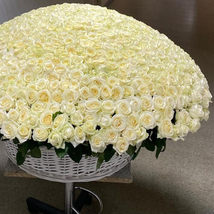 1001 белая роза в корзине «Чистота» в Азнакаево