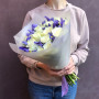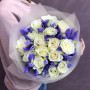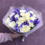 Букет из белых роз и синих ирисов в Азнакаево